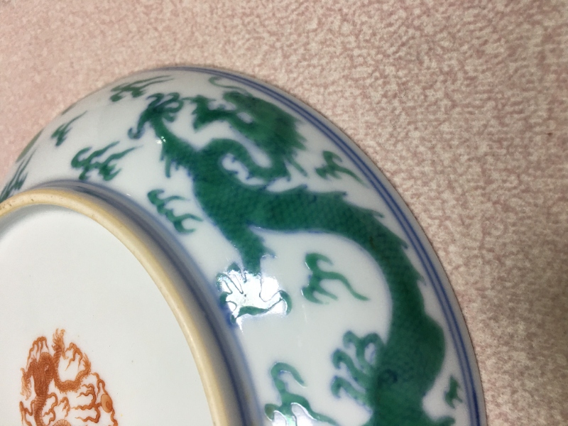 清乾隆 斗彩绿龙纹盘